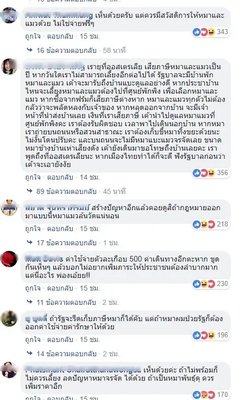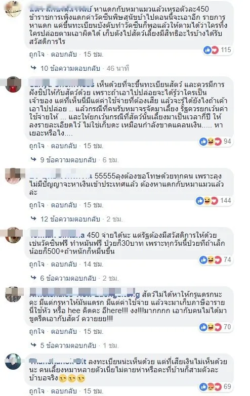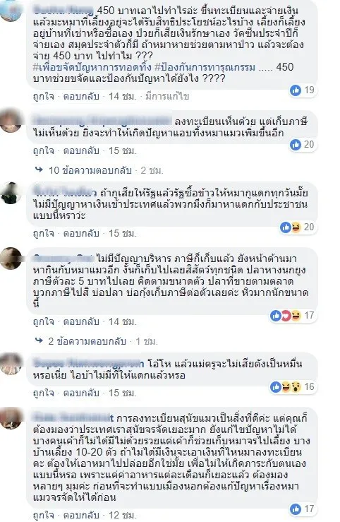คุณเห็นด้วยหรือไม่ ที่ครม.เตรียมออกกฎหมายขึ้นทะเบียนสัตว์เลี้ยง ‘หมา-แมว’ โดยคนเลี้ยงต้องเสียค่าใช้จ่ายให้รัฐตัวละ 450 บาท เพื่อเป็นการคุ้มครองดูแลสัตว์ให้ได้รับการดูแลอย่างดี
