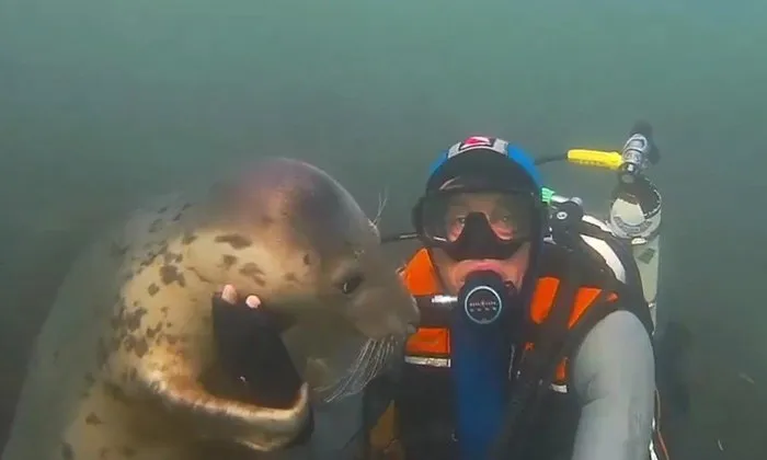 "เล่นด้วยซิ" แมวน้ำเกาะติดนักดำน้ำ ไม่ยอมให้ว่ายไปไหน