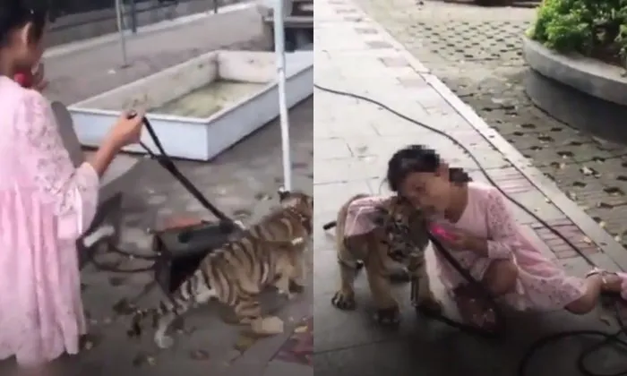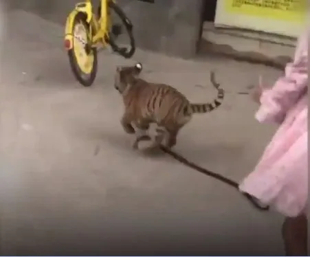 12ต.ค.61 ทางด้านของเพจเฟซบุ๊ก China Xinhua News รายงานว่า เด็กหญิงวัย 9 ขวบ ลูกสาวของคุณซุน เจ้าของสวนสัตว์แห่งหนึ่งในเมืองเฉวียนโจว มีหน้าที่จูงลูกเสือวัย 3 เดือน ออกมาเดินเล่นทุกวันหลังกินอาหารเช้าเสร็จ เพื่อให้ลูกเสือมีสุขภาพแข็งแรงสมบูรณ์ เนื่องจากเจ้าเสือวัยนี้ขี้เล่นและไม่เป็นอันตรายต่อมนุษย์ ทั้งยังอยู่ในวัยเด็กเหมือนกัน มิตรภาพระหว่างทั้งคู่จึงค่อยๆ ก่อตัวกลายเป็นความสนิทสนมและผูกพัน