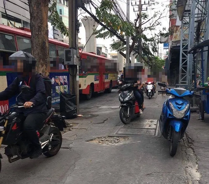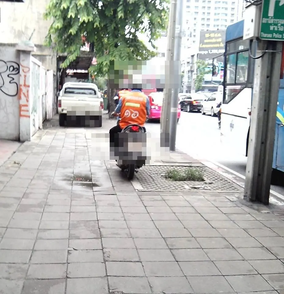 ปัจจุบันจะพบเจอได้บ่อยเกี่ยวกับการสัญจรทางเท้าในสังคมปัจจุบัน เนื่องจากรถมอเตอร์ไซด์เลี่ยงเส้นทางการสัญจร มาขับขี่บนทางเท้า ทำให้กทม. ต้องเข้ามาดูแลออกกฎเพื่อดูแลประชาชนที่ใช้ทางเท้าสัญจร เนื่องจากเกิดอุบัติเหตุรถเฉี่ยวชนประชาชนที่ใช้ทางเท้าบ่อยครั้ง