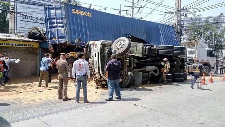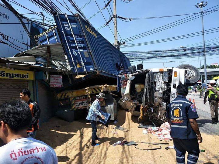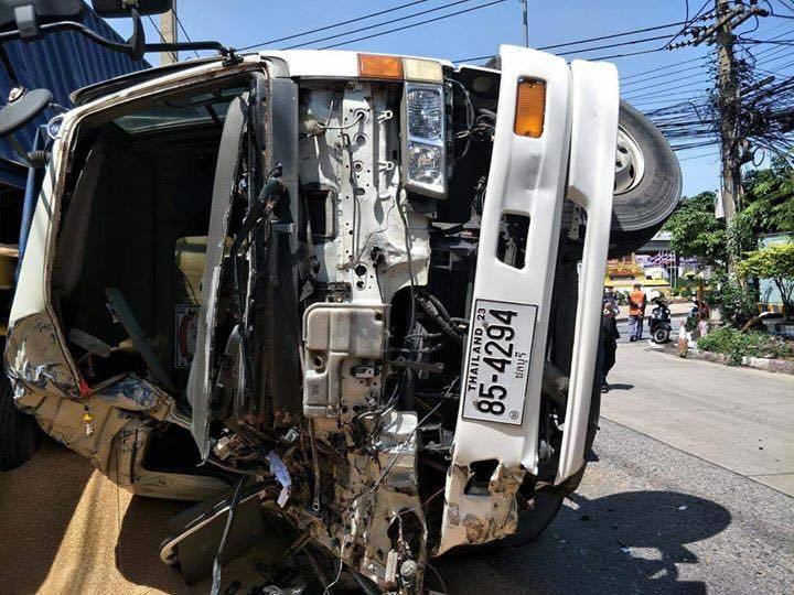พอขับตามมาจนถึงสี่แยกอ่าวอุดม รถบรรทุกน่าจะทราย แหกโค้งมาจากทางแยกขวามือ ชนโดนหัวลากคันนั้นพอดี แม่ ลูก ตกลงจากรถ ตกใจ ช็อกมาก ขาสั่น หาเบรกไม่เจอเลย แต่ยังโชคดี ตรงข้ามเป็น โรงพยาบาลแหลมฉบัง และป้อมตำรวจอยู่ใกล้เคียงถือเป็นแหล่งชุมชน มีคนออกมาช่วยเหลือกันพอสมควร ถือว่าเป็นความโชคดีที่นิสัยไม่ขับรถจี้ตูดคนอื่น ขอให้ปลอดภัยทั้งเด็กและผู้ใหญ่นะคะ"