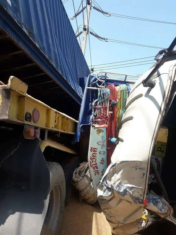 ระทึกหัวใจ 10 ล้อแหกโค้งพุ่งชนรถบรรทุก 2 ชีวิตกระเด็นทะลุกระจกหน้า คู่แม่ลูกขับตามมาหวีดร้องลั่น