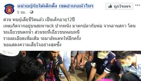 "ด่วน พบผู้เสียชีวิตแล้ว เป็นเด็กอายุ12ปี
