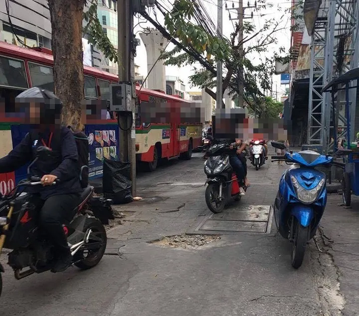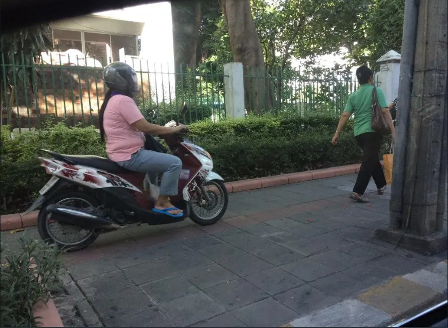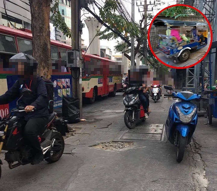 ในปัจจุบันจะพบเจอได้บ่อยเกี่ยวกับการสัญจรทางเท้าในสังคมปัจจุบัน เนื่องจากรถมอเตอร์ไซด์เลี่ยงเส้นทางการสัญจร มาขับขี่บนทางเท้า ทำให้กทม. ต้องเข้ามาดูแลออกกฎเพื่อดูแลประชาชนที่ใช้ทางเท้าสัญจร เนื่องจากเกิดอุบัติเหตุรถเฉี่ยวชนประชาชนที่ใช้ทางเท้าบ่อยครั้ง