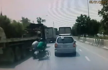 จากคลิปจะเห็นว่าชายเสื้อสีเขียวขี่จยย.มาด้วยความเร็ว ก่อนเปลี่ยนเลนกะทันหัน ทำให้ผู้ขี่จยย.อีกคัน เฉี่ยวชน เสียหลักล้ม ถูกรถเทลเลอร์ทับร่างได้รับบาดเจ็บสาหัส ก่อนเสียชีวิตในเวลาต่อมา ส่วนคู่กรณีอาศัยช่วงชุลมุนขี่จยย.ขับหลบหนี