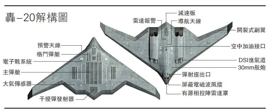 เครื่องบินทิ้งระเบิด H-20 ของจีน เป็นเครื่องบินทิ้งระเบิดทางยุทธศาสตร์รุ่นใหม่ ที่มีเทคโนโลยี สเตลธ์ และจะมาแทนที่เครื่องบินทิ้งระเบิด H-6K