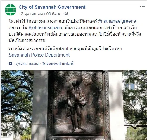 ภาพดังกล่าวถูกค้นพบและโพสต์ลงเอาไว้เมื่อวันพฤหัสบดีที่ผ่านมา 11ต.ค.61 เจ้าหน้าที่ได้ทำการแกะสติ๊กเกอร์ดังกล่าวออกทันที พร้อมกับส่งมอบให้เจ้าหน้าที่ตำรวจท้องถิ่นเร่งแกะรอยตามผู้ที่ก่อเหตุเช่นนี้ แม้ว่าอนุสาวรีย์ดังกล่าวจะไม่ได้ความเสียหายใดๆ ก็ตาม เจ้าหน้าที่สภาเมืองซาวันนาห์ เปิดเผยว่า ถึงแม้ว่ามันจะดูตลกขบขัน แต่การทำลายอนุสาวรีย์ทางประวัติศาสตร์และทรัพย์สินของราชการไม่ใช่เรื่องที่น่าหัวเราะ ความจริงมันถือเป็นความผิดทางอาญา