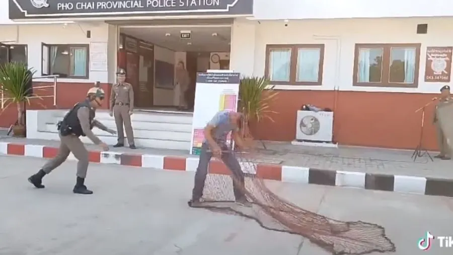 การสาธิตวิธีการจับคนร้ายคลุ้มคลั่ง ของทาง สถานีตำรวจภูธรโพธิ์ชัย ต. ขามเปี้ย อ. โพธิ์ชัย จ. ร้อยเอ็ด ที่ได้ใช้"แหดักปลา" นำมาเป็นอุปกรณ์ในการฝึกซ้อม เข้าระงับเหตุ ซึ่ง"แหดักปลา" นั้นเป็นอุปกรณ์ที่คนอีสานคุ้นเคยกันดี จึงเป็นการใช้ภูมิปัญญาท้องถิ่น แต่คุณประโยชน์ไม่แพ้ปืนตาข่ายเมืองนอก