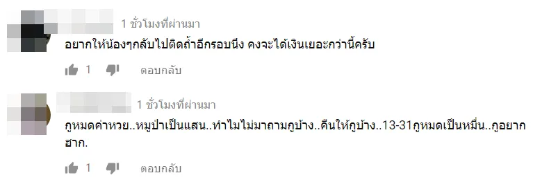 ด้านชาวเน็ตย้อนแย้งว่า "เป็นกำลังใจให้หมูป่านะคะ อยากให้หมูป่าบริจาคเงิน 49 ล้าน ให้เจ้าหน้าที่ทุกฝ่ายและญาติจ่าแซมนะคะ "