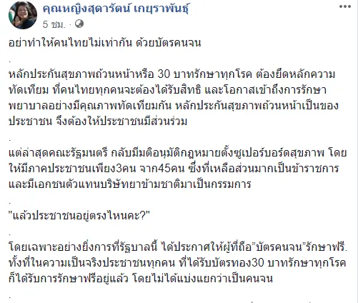 "อย่าทำให้คนไทยไม่เท่ากัน ด้วยบัตรคนจน