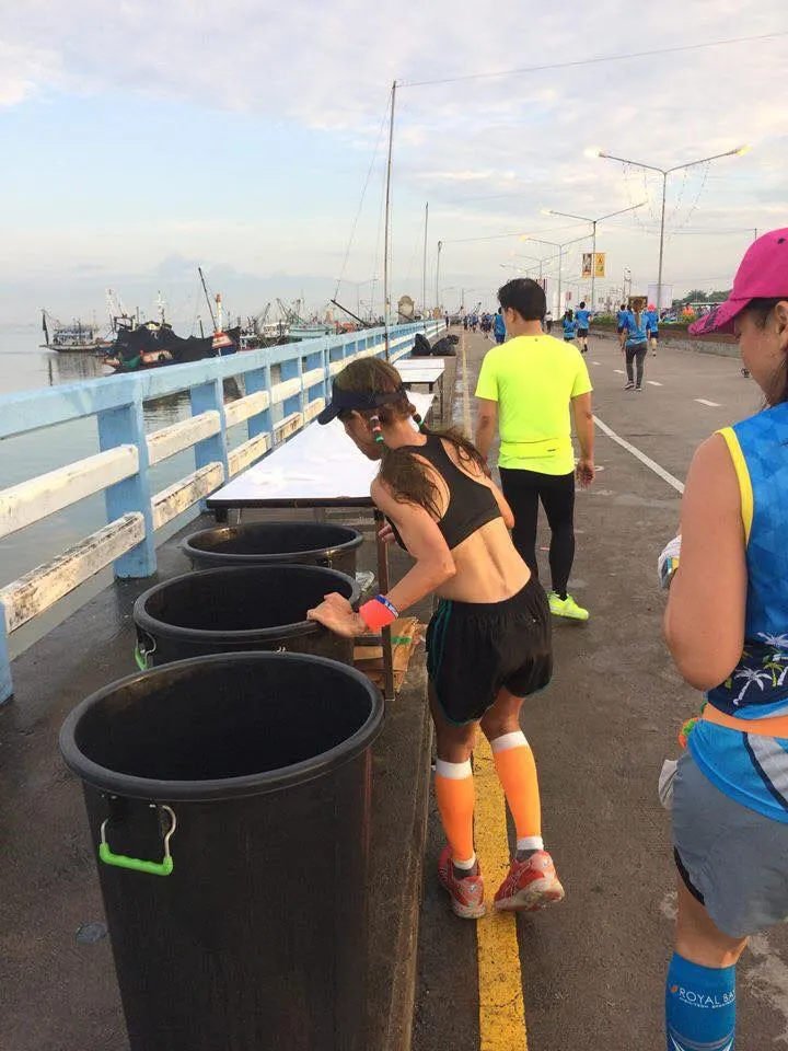 คราวนี้พอขึ้นสะพานเรียบทะเลไปคราวนี้เริ่มมาทั้งแดดที่แรงขึ้นแถมไม่มีจุดน้ำหรือพักหลบแดดเลย ยาวไปจนถึงจุดกลับตัวสุดท้ายสุดสะพานประมาณกิโลที่34 มีน้ำแดง(สีแดง แต่ไม่มีความหวาน น่าจะเจือจางมากครับ55) แต่ที่สำคัญคือไม่มีสายรัดข้อ (หมดค่ะ) (ในใจคิดนี่ผมจะวิ่งมากลับตัวตรงนี้ทำไมวะเนี่ย)