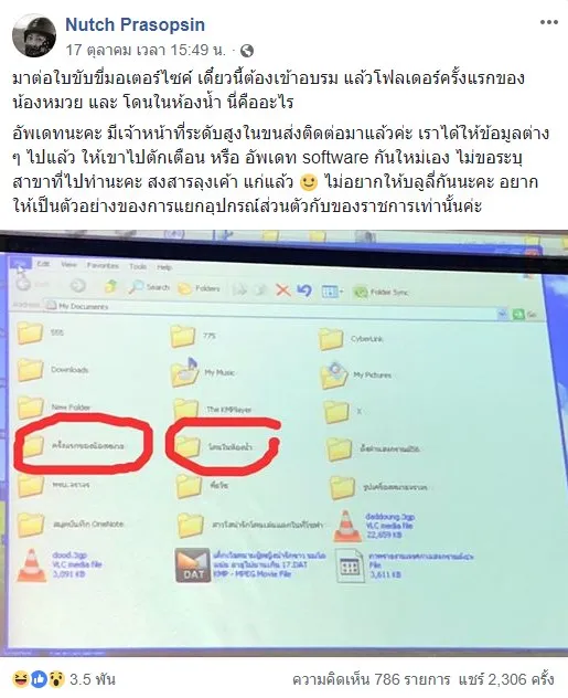 อัพเดทนะคะ มีเจ้าหน้าที่ระดับสูงในขนส่งติดต่อมาแล้วค่ะ เราได้ให้ข้อมูลต่าง ๆ ไปแล้ว ให้เขาไปตักเตือน หรือ อัพเดท software กันใหม่เอง ไม่ขอระบุสาขาที่ไปทำนะคะ สงสารลุงเค้า แก่แล้ว 🙂 ไม่อยากให้บลูลี่กันนะคะ อยากให้เป็นตัวอย่างของการแยกอุปกรณ์ส่วนตัวกับของราชการเท่านั้นค่ะ