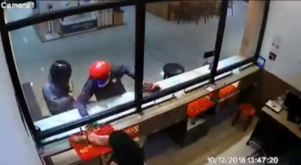 ซึ่งไม่สำเร็จ เพราะว่าทางร้านทองได้ติดตั้งกระจกนิรภัยที่มีประสิทธิภาพป้องกันการโจรกรรมค่อนข้างดีเยี่ยม ทำให้คนร้ายทุบกระจกเท่าไหร่ก็แทบจะไม่สะทกสะท้านใดๆ แต่ก็ดูเหมือนว่าโชคจะยังเข้าข้าง 2 คนร้าย เพราะปรากฏว่าพนักงานสาวประจำร้านนั้น หยิบถาดใส่ทองนำไปประเคนใส่มือคนร้ายผ่านช่องหน้าต่างเล็กๆ แทน ทำให้คนร้ายสามารถกอบโกยทองคำได้ไปเป็นจำนวนมาก ซึ่งเหตุดังกล่าวเกิดขึ้นเมื่อ 12 ตุลาคมที่ผ่านมา โดยคลิปภาพจากกล้องวงจรปิดของร้านทองแห่งนี้กลายเป็นที่พูดถึงในสังคมออนไลน์เป็นอย่างมาก หลายคนมองว่ากระจกนิรภัยทำหน้าที่ป้องกันภัยเอาไว้ได้ดี แทนที่พนักงานสาวในร้านจะรีบหลบหนีเข้าไปด้านหลัง และแจ้งตำรวจ แต่กลับยกถาดใส่ทองคำส่งให้คนร้ายที่กำลังจะหมดหวังในการปล้นครั้งนี้
