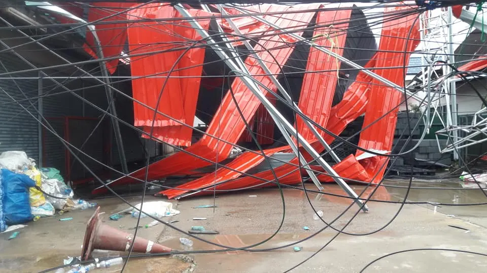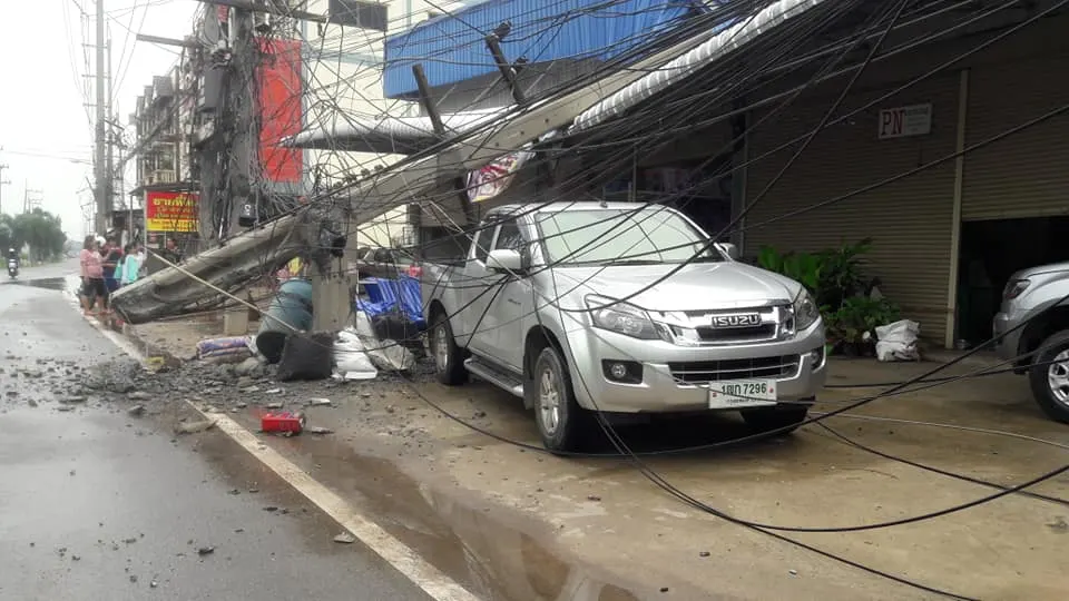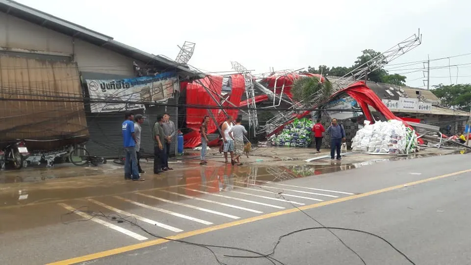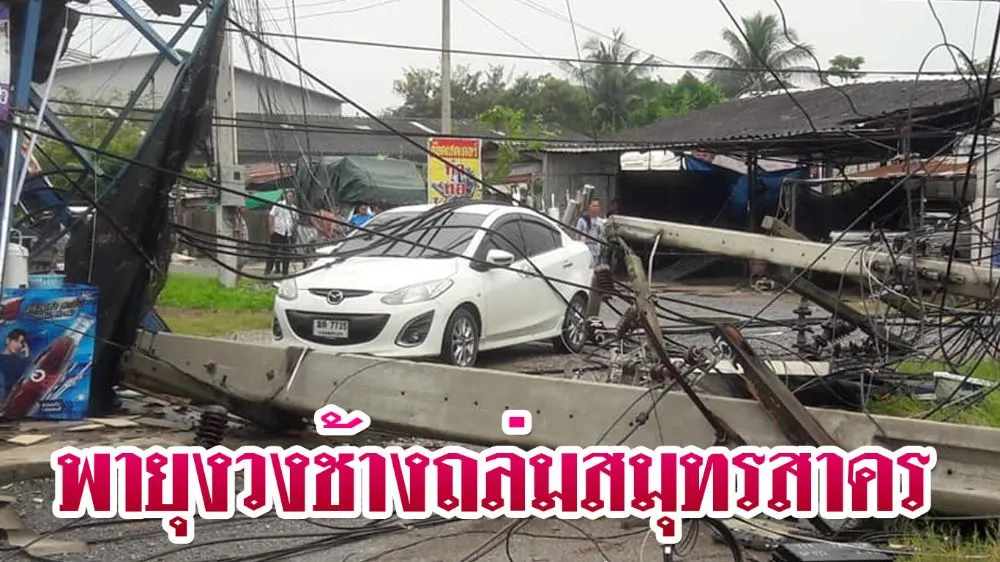 พายุงวงช้างถล่มสมุทรสาคร หอบหลังคาตลาดนัดปลิวข้ามฝั่ง เสาไฟฟ้าล้มระเนระนาด ร้านค้า ยานพาหนะ พังเสียหายจำนวนมาก และมีผู้ได้รับบาดเจ็บ