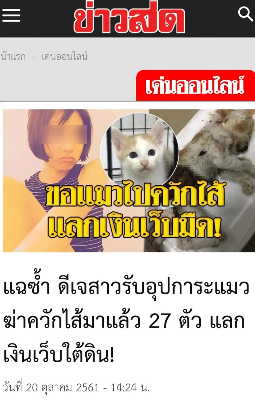วันละกลอน"ดีเจสาว!ผ่าท้องแมวควักใส้โชว์เวปมืด!แลกบิทคอยน์?ล่าสุดตายแล้ว27 ตัว!?