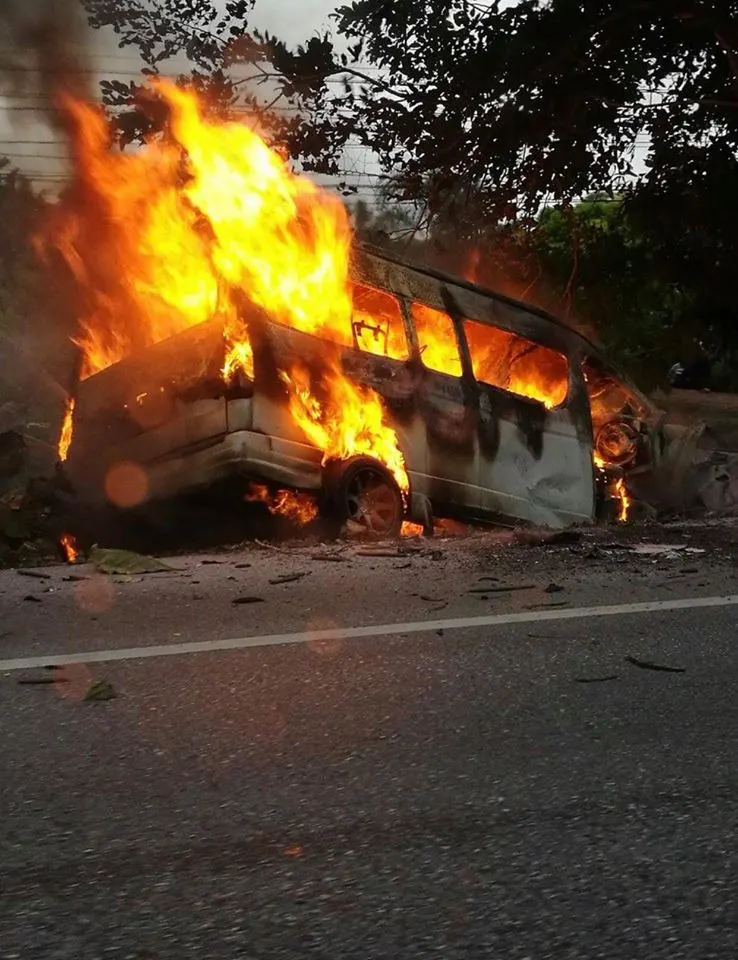 เกิดเหตุรถตู้โดยสารสาธารณะ เกิดเพลิงไหม้ ลุกท่วมคันรถ บริเวณช่วงรอยต่อ อ.คลองขลุง อ.เมือง จ.กำแพงเพชร เบื้องต้นเพลิงสงบแล้ว ผู้บาดเจ็ดสาหัสหลายคน และเสียชีวิตอย่างน้อย 10 ศพ ทางเจ้าหน้าที่และกู้ภัย กำลังนำร่างผู้เสียชีวิตออกมา และกำลังเก็บหลักฐานจากผู้เสียชีวิตอยู่เพื่อระบุตัวตน