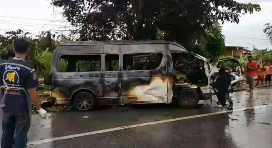 สุดสลด!! รถตู้เสียหลักชนต้นไม้ เสียชีวิตแล้วอย่างน้อย 10 ศพ