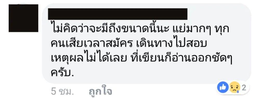 ได้มีผู้ใช้เฟซบุ๊กคนหนึ่ง โพสต์เรื่องราวที่เกิดขึ้นกับตน ขณะสอบเพื่อเข้าทำงานในหน่วยงานรัฐแห่งหนึ่ง ซึ่งได้ระบุว่า