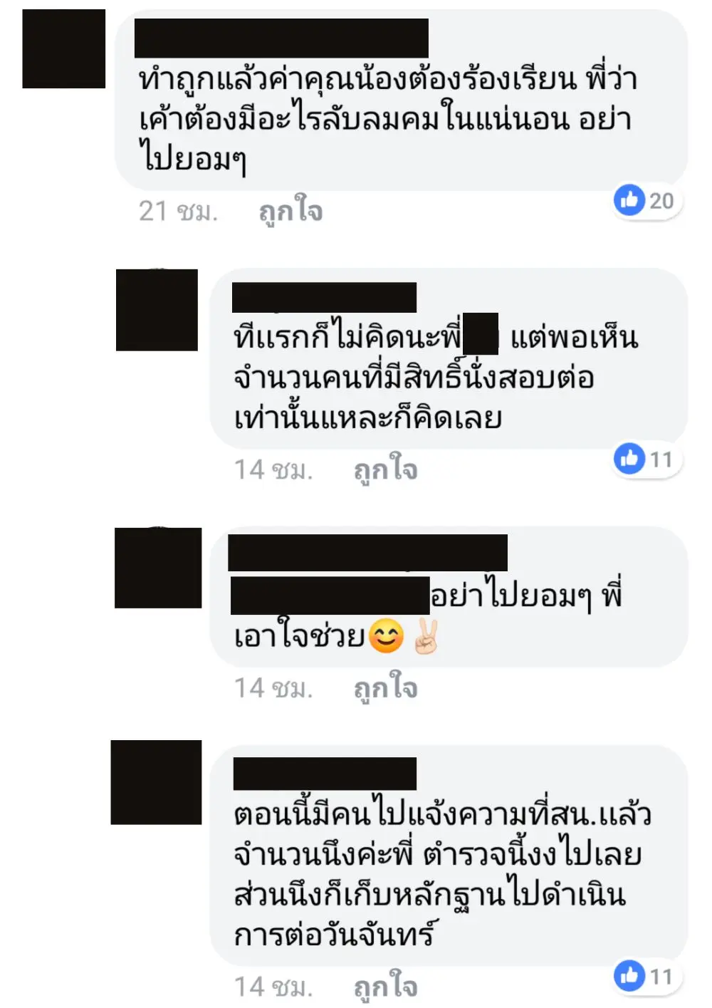 จากที่โพสต์นี้ได้ถูกเผยแพร่ออกไป เพื่อนๆ ในเฟซบุ๊กต่างเข้าแสดงความคิดเห็นบางคนตั้งข้อสังเกตว่า เรื่องนี้ต้องมีอะไรไม่ชอบมาพากลแน่ๆ และให้กำลังใจ ซึ่งบางคนต้องการให้เธอนั้นเอาเรื่องหน่วยงานรัฐนี้ให้ถึงที่สุด
