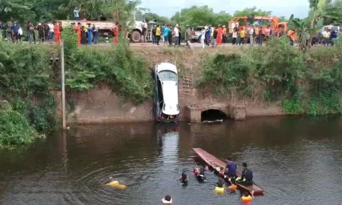 หนุ่มขับเก๋งพาครอบครัวไปไหว้พระ รถเสียหลักตกน้ำดับ 4 ศพ คนขับรอดคนเดียว