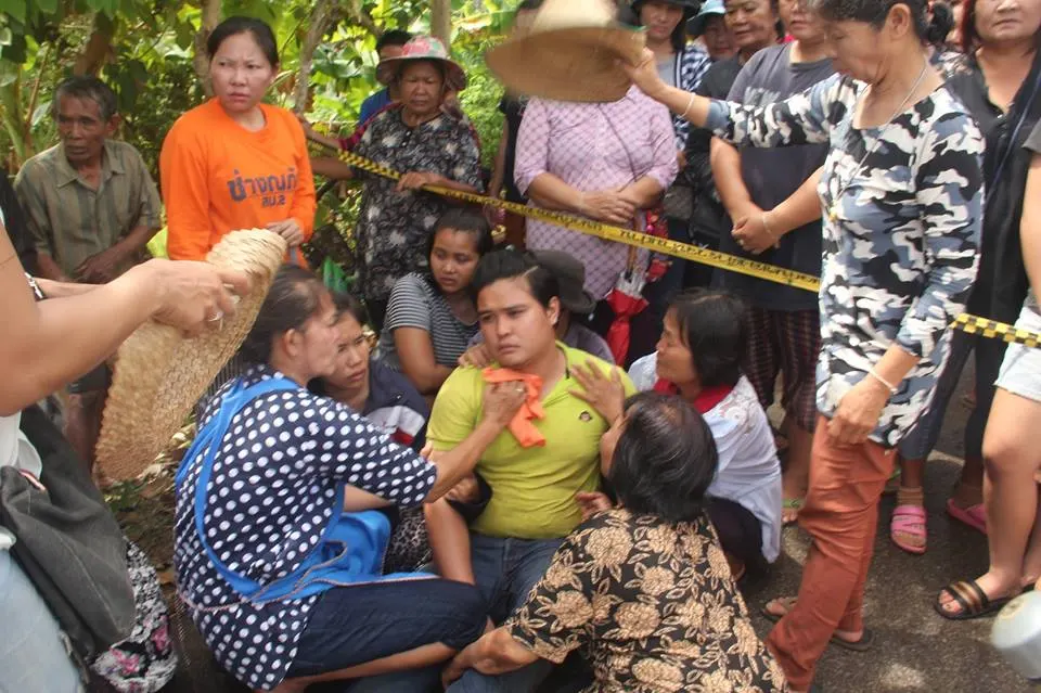 ที่เกิดเหตุมีประชาชนมุงดูจำนวนมาก และพบรถยนต์เก๋ง ยี่ห้อฮอนด้า รุ่นบีซีวี สีบรอนซ์เงิน ทะเบียน 7 กบ 2946 กรุงเทพฯ สภาพจมอยู่ในลำห้วยลาน และมีคนติดอในตัวรถ บริเวณข้างทางมีรอยรถเสียหลักและเสาหลักกั้นริมทางขาว-ดำ ถูกชนเสียหาย 1 ต้น คนขับชื่อนายพงษ์พันธ์ ใสแสง 28 ปี บ้านเลขที่ 130 ม.13 บ.โนนสำราญ ต.น้ำโมง อ.ท่าบ่อ จ.หนองคาย สภาพอิดโรย เนื้อตัวเปียกปอนไปทั้งตัว ภายในรถเก๋งที่จมน้ำทราบว่ามีแม่ แม่ยาย ภรรยาและลูกชายวัย 2 ขวบติดอยู่ในรถ ประกอบด้วย นางแพร มุ่งทุ่งกลาง อายุ 52 ปี นางทอง มุ่งทุ่งกลาง อายุ 62 ปี นางบังอร ใสแสง อายุ 26 ปี และ ด.ช.นฤเบศ ใสแสง อายุ 2 ขวบ เสียชีวิตอยู่ในรถ เจ้าหน้าที่จึงนำรถยกช่วยกู้ซากรถขึ้นจากน้ำ ความลึกประมาณ 3 เมตร เพื่อนำร่างอันไร้วิญญาณทั้ง 4 คนขึ้นจากน้ำนานหลายชั่วโมง อย่างทุลักทุเล
