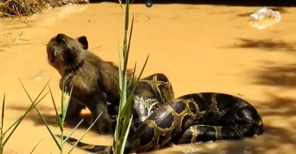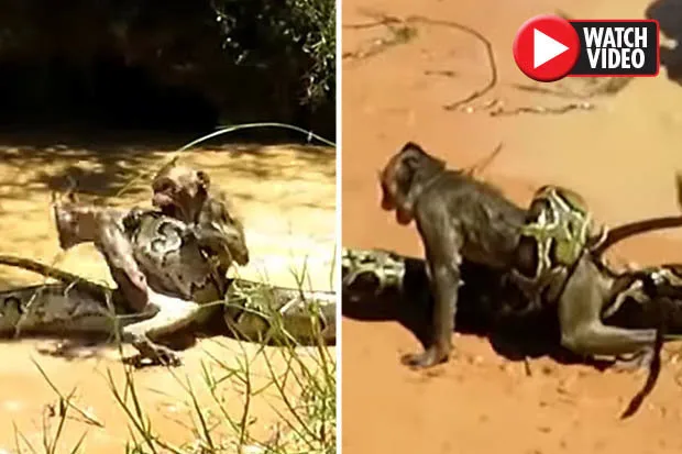 วินาทีชีวิต! ลิงน้อยหวิดโดนไอ้หลามยักษ์เขมือบ โชคดีถูก 2 เด็กชายช่วยเหลือทัน (มีคลิป)