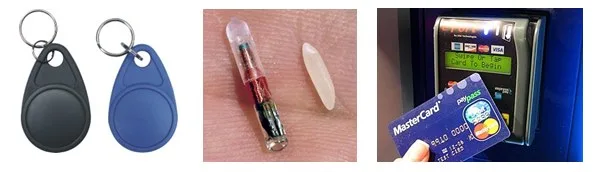 สำหรับรูปแบบของเทคโนโลยี RFID ที่ใช้ในการดังกล่าวก็มีทั้งแบบสมาร์ดการ์ดที่สามารถถูกเขียน หรือ อ่านข้อมูลออกมาได้โดยไม่ต้องมีการสัมผัสกับเครื่องอ่านบัตร หรือ คอนแทคเลสสมาร์ดการ์ด (Contact less Smart Card) , เหรียญ , ป้ายชื่อ หรือ ฉลากซึ่งมีขนาดเล็กมาก จนสามารถแทรกลงระหว่างชั้นของเนื้อกระดาษ หรือ ฝั่งเอาไว้ในตัวสัตว์ ได้เลยทีเดียว