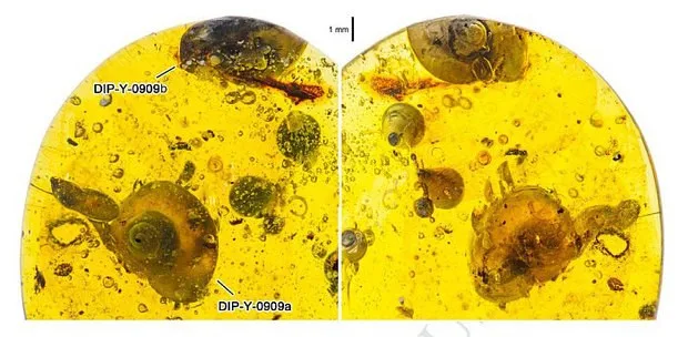 เมื่อเร็วๆนี้ นักวิทยาศาสตร์ชาวออสเตรเลียได้ค้นพบหอยทากที่มีอายุ 99 ล้านปีอยู่ภายในอำพัน ซึ่งถูกค้นพบที่ประเทศพม่า เป็นหอยทากยุคก่อนประวัติศาสตร์ที่ถูกเก็บรักษาไว้ภายในอำพันเป็นอย่างดี