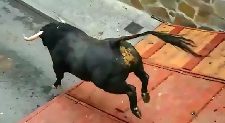 เมื่อเร็วๆนี้ metro.co.uk ได้นำเสนอภาพอันน่าสลดใจที่เกิดขึ้นในหมู่บ้าน Mejorada del Campo ใกล้ๆ กับเมืองมาดริดของสเปน เมื่อวัวตัวใหญ่ตัวหนึ่งต้องมาขาหลังหักก่อนลงการแข่งขันสู้วัวกระทิง เพราะรีบกระโดดลงจากทางลาดที่พาดระหว่างกรงขนกับพื้นคอนกรีตที่แข็ง
