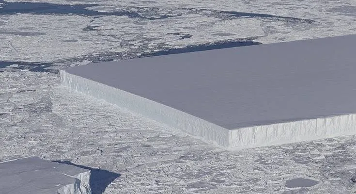 นาซ่าเผยภาพภูเขาน้ำแข็งรูปทรงสี่เหลี่ยมผืนผ้า ราวกับมีผู้ตกแต่งมัน ในบริเวณแอนตาร์กติก้า ซึ่งเป็นรูปทรงที่หาพบได้ยากในธรรมชาติ ทั้งยังมีผิวหน้าเรียบสนิทและมีมุมแหลมเป็นมุมฉาก 90 องศา การสำรวจนี้เป็นการสำรวจน้ำแข็งขั้วโลก ภายใต้โครงการ Icebridge จากการสำรวจพบว่ามันมีความกล้างราว 1.6 กิโลเมตรทีเดียว