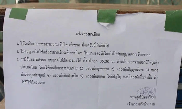 2.) ไม่อนุญาตให้ใช้เครื่องขยายเสียงเพื่อการใดๆในนามของวัดโดยไม่ได้อนุญาตจากเจ้าอาวาส