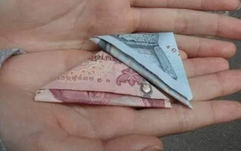 ระวัง !! ถัาเห็นธนบัตรหล่นอยู่บนท้องถนน ในลักษณะ พับเป็นสี่เหลี่ยม สามเหลี่ยม "ห้ามเก็บเด็ดขาด"