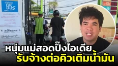 วิกฤตสร้างโอกาส! หนุ่มแม่สอดปิ๊งไอเดีย "รับจ้างต่อคิวเติมน้ำมัน" แก้พฤติกรรมรอคิวข้ามคืน