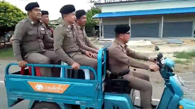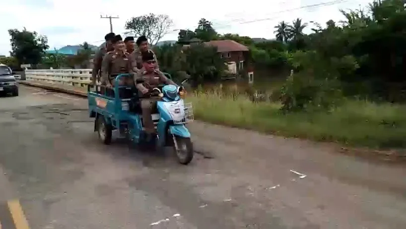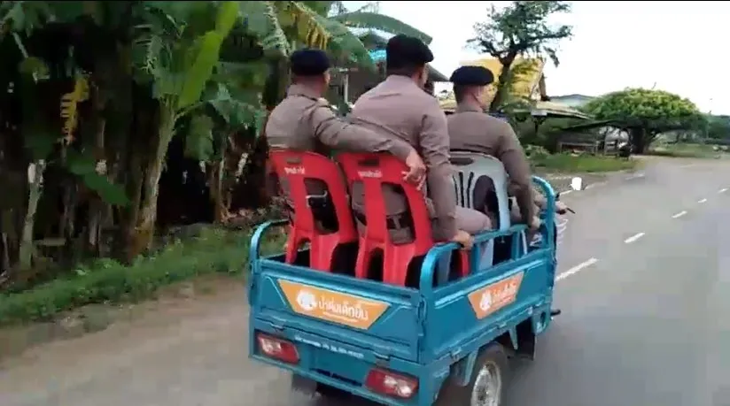 "ตำรวจ" ขับสามล้อบรรทุกนั่งท้ายไปหลายนาย สุดท้ายลงป่ากล้วย โชคดีรอดมาได้ทุกนาย