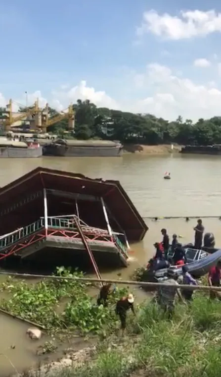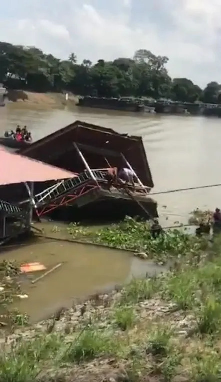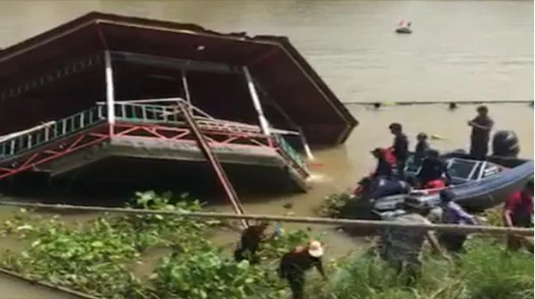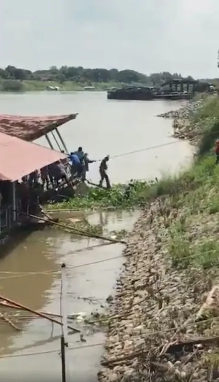 "หนีตาย" แพวัดป่าโมกวรวิหาร ล่มครื้นไปทั้งหลัง ขณะนักท่องเที่ยวชมจัดแข่งขันเรือยาว