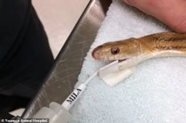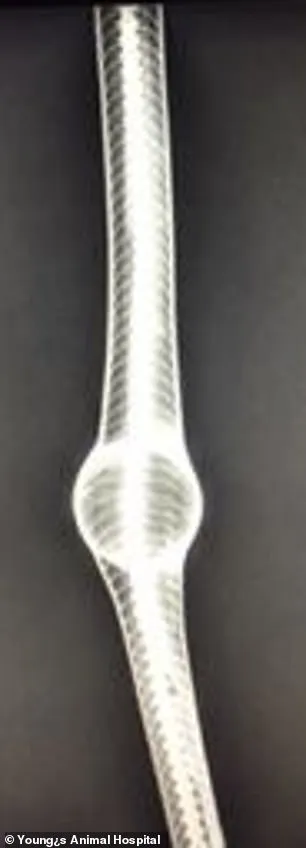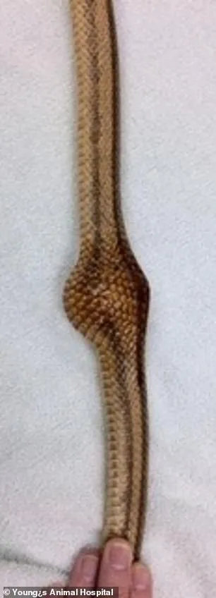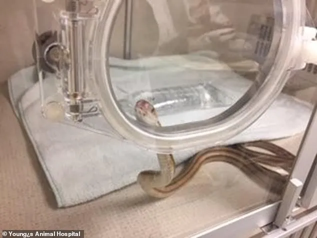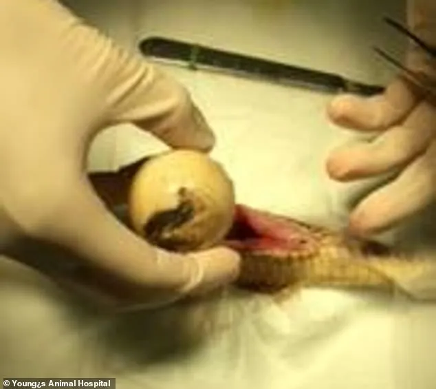 หลังจากที่เจ้าหน้าที่กู้ภัยถูกเรียกไปรับงูตัวดังกล่าวเพื่อส่งโรงพยาบาลสัตว์ Young's Animal สัตวแพทย์ได้นำงูมาเอ็กซ์เรย์เพื่อหาสาเหตุ ก่อนจะพบว่ามันได้กลืนลูกปิงปองเข้าไป เพราะคิดว่ามันเป็นไข่
