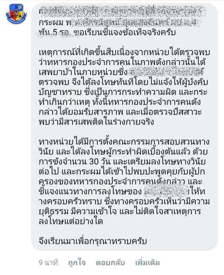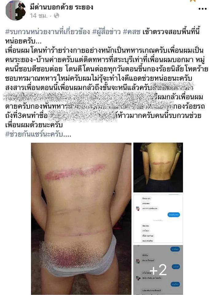 โหดไปไหม!! เพจดังโพสต์ พลทหารอ้างโดนทำร้ายร่างกาย เหตุเสพยา