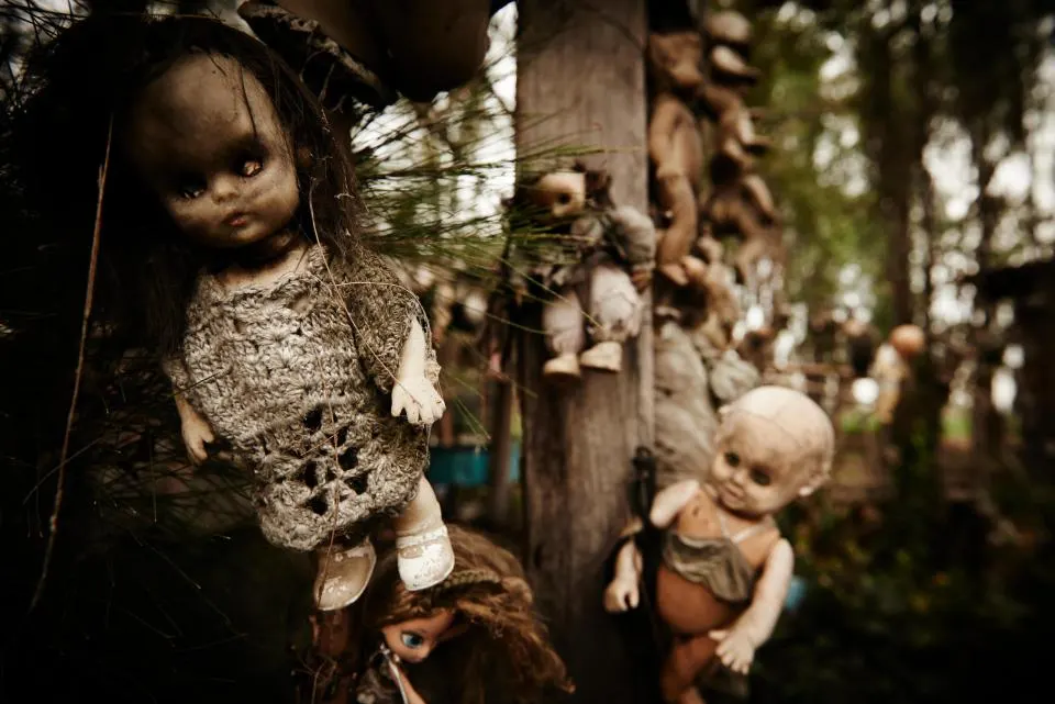 ภาพของเล่นถูกแขวนไว้ในเกาะของ Dolls, Xochimilco, Mexico