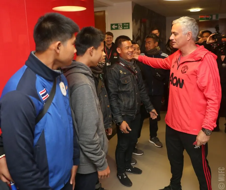 ภาพ “13หมูป่า” เยือนแมนยูไนเต็ด “มูรินโญ่-นักเตะดัง” ร่วมต้อนรับสุดอบอุ่น