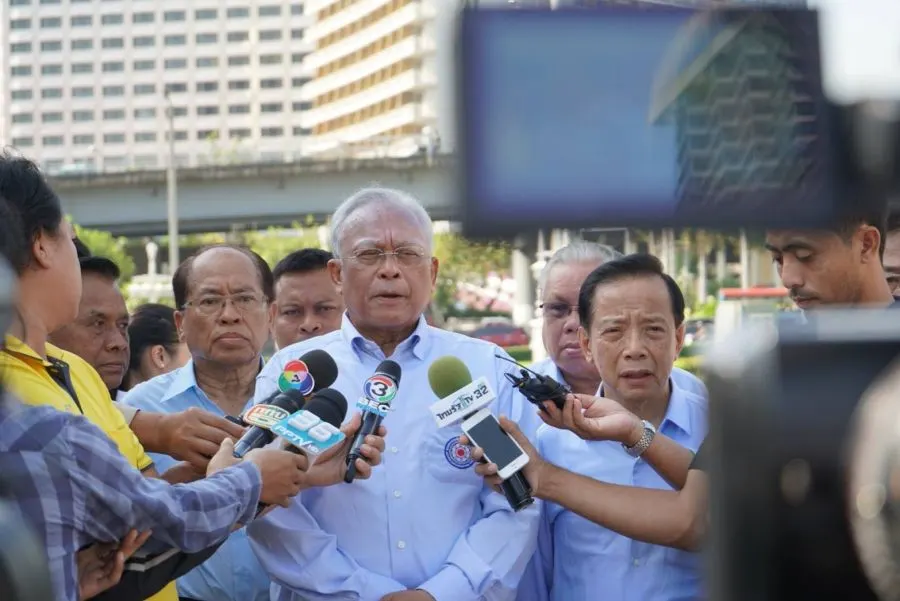 ในระหว่างทางมีผู้สื่อข่าวมาขอสัมภาษณ์นายสุเทพ โดยเฉพาะในประเด็นเพลงแร็พที่ชื่อ "ประเทศกูมี" ที่กำลังเกิดเสียงวิพากษ์วิจารณ์ในโลกโซเชียล โดยระบุถึงผู้จัดทำว่า เกิดมาเป็นคนไทยแต่กลับมาแสดงออกว่ารังเกียจชิงชังและคิดทำร้ายแผ่นดินบ้านเกิดของตัวเองแบบนี้ ถือว่าไม่สมควรอย่างยิ่ง