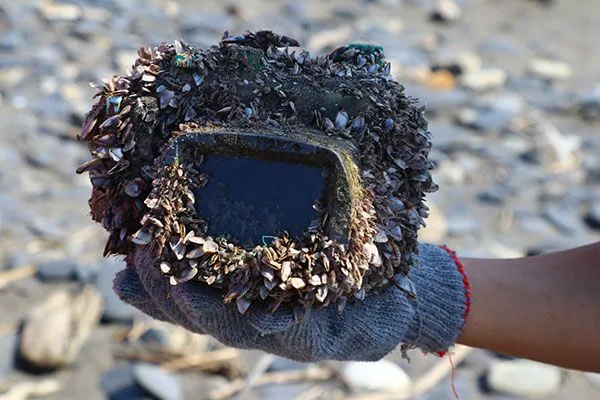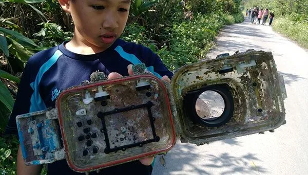 มีเด็กชาย อายุ 11 ปี ชาวไต้หวัน เก็บกล้องถ่ายรูปได้ บริิเวณชายหาด หลังลอยมาเกยตื่น ในสภาพที่ดูแล้วสุดขยะแขยง เพราะถูกกลุ่มเพรียงเกาะเต็มรอบ กรอบกันน้ำเต็มไปหมด คาดว่าน่าจมอยู่ในก้นทะเล มานานแรมปี ไม่งั้นไม่มีจำนวนเพรียงเกาะอยู่มากขนาดนี้แน่ ๆ มาดูรุปข้างในกันเลย