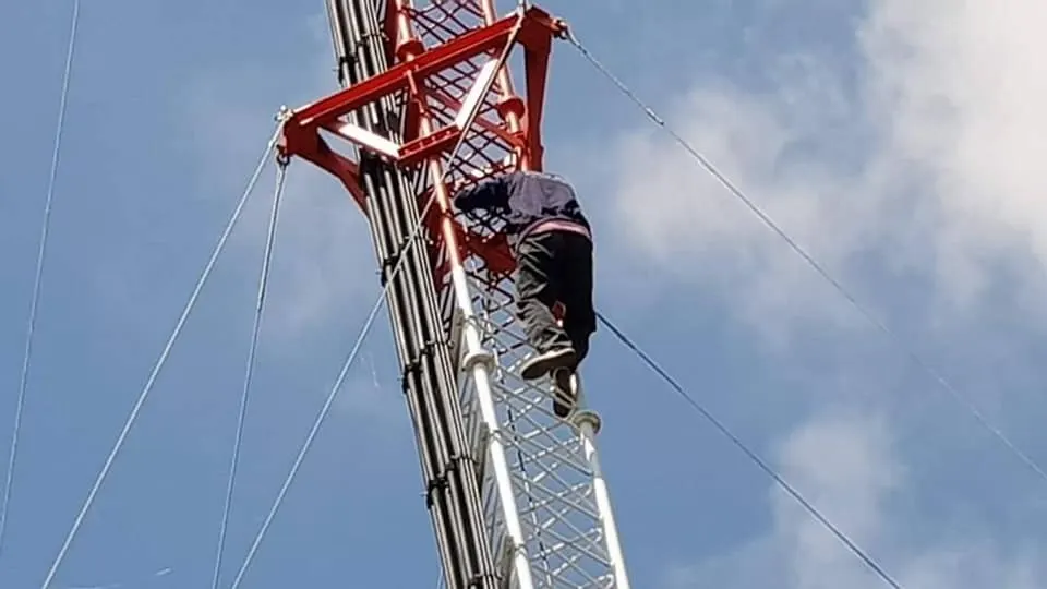 หนุ่มปีนเสาโทรศัพท์ประชดรัก ที่แฟนสาวไม่ยอมแต่งงานด้วย!