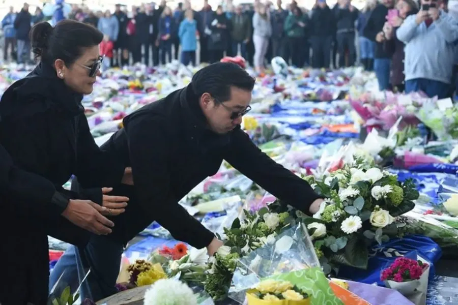 ล่าสุดทางครอบครัว ศรีวัฒนประภา ประกอบด้วย “คุณเอมอร ศรีวัฒนประภา” ภรรยาของ “เจ้าสัววิชัย”, “คุณอัยยวัฒน์ ศรีวัฒนประภา” รองประธานสโมสรเลสเตอร์, “คุณอภิเชษฐ์ ศรีวัฒนประภา”, “คุณอรุณรุ่ง ศรีวัฒนประภา” ลูกชาย และลูกสาว ได้เดินทางออกจากประเทศไทยตั้งแต่วานนี้ และถึงจุดไว้อาลัยที่สนาม คิง เพาเวอร์ ที่เต็มไปด้วยช่อดอกไม้จากแฟนๆ บรรยากาศต้องบอกเลยว่าเศร้าสุดๆ ไม่เพียงแต่ครอบครัวที่เสียน้ำตา งานนี้รวมไปถึงแฟนบอลอีกด้วย
