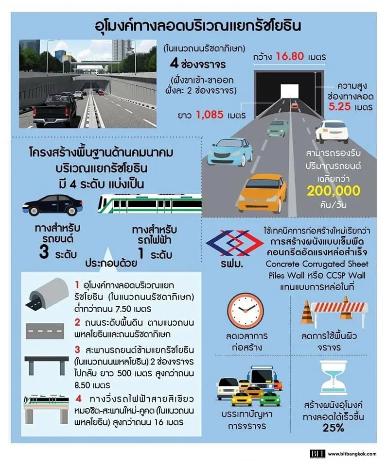 5 พ.ย.61ได้ฤกษ์เปิดใช้ อุโมงค์ทางลอดแยกรัชโยธิน (ตามแนวถนนรัชดาภิเษก) รองรับรถยนต์ 200,000 คัน/วัน