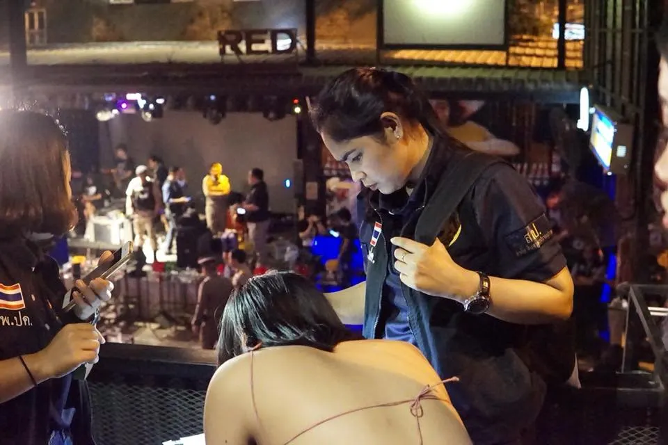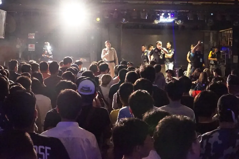ชุดปฏิบัติการพิเศษกรมการปกครองได้ทำการคัดแยกนักเที่ยวที่เป็นเด็กอายุต่ำกว่า 20 ปี ออกมา และทำการตรวจปัสสาวะนักเที่ยวทุกคน พบว่ามีนักเที่ยวที่เป็นเด็กอายุต่ำกว่า 20 ปี เข้าไปใช้บริการจำนวนมากถึง 128 คน แยกเป็นเด็กอายุต่ำกว่า 18 ปี จำนวน 43 คน เป็นเด็กอายุเกิน18 ปี แต่ยังไม่ถึง 20 ปี จำนวน 85 คน รวมเด็กอายุต่ำกว่า 20 ปีจำนวนทั้งสิ้น 128 คน มีนักเที่ยวที่ปัสสาวะเป็นสีม่วง จำนวน 131 คน พบยาเสพติดและอุปกรณ์การเสพหลายชนิด ทั้งยาไอซ์ ยาอี ยาเคตามีน ยาไฟว์ เกลื่อนพื้นร้าน และในห้องน้ำภายในร้าน เจ้าหน้าที่ตรวจพบยาอี และยาเค บรรจุซองพร้อมใช้ จำนวน 83 หน่วยการใช้(83 ห่อ) ยาอีและยาไฟว์ อีกจำนวนหนึ่ง พร้อมอุปกรณ์การเสพ