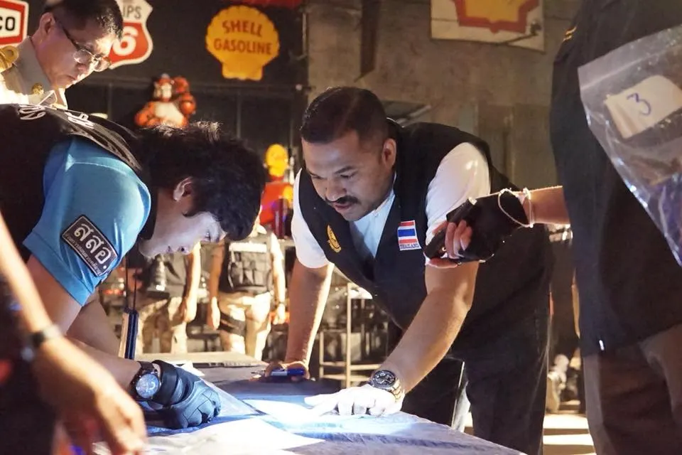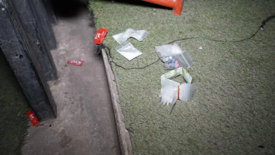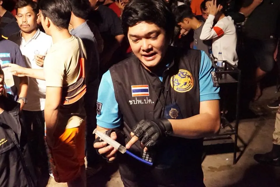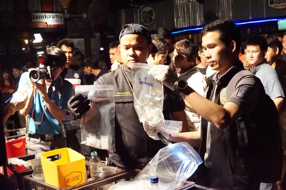 เมื่อเจ้าหน้าที่ฝ่ายปกครองได้แสดงตัว นักเที่ยวที่เสพยา ต่างตกใจ โยนยาเสพติดทิ้งลงเกลื่อนพื้น