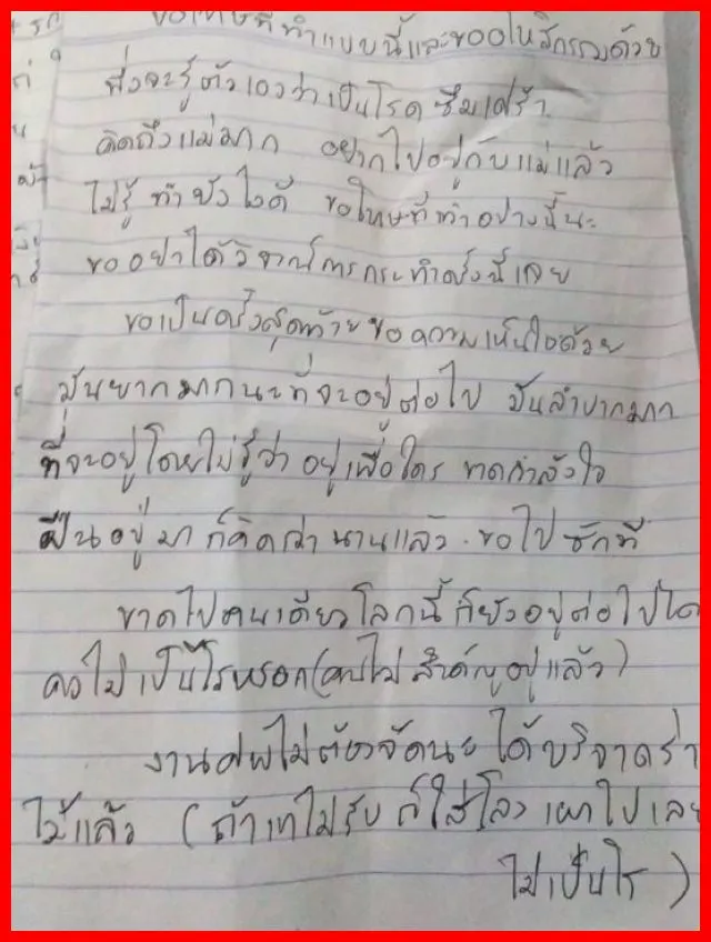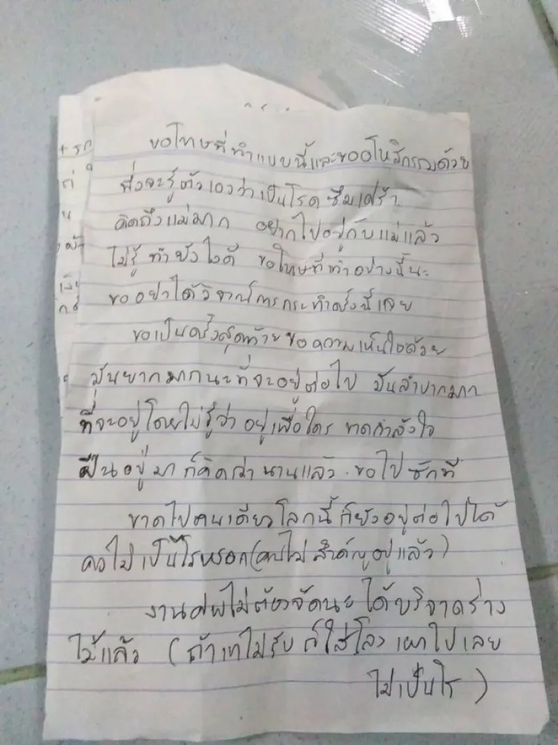 สลดใจ! สาวป่วยโรคซึมเศร้าฉีดยาเข้าสายน้ำเกลือ ปลิดชีพตัวเอง พร้อม จม. ลาตายคิดถึงแม่มาก