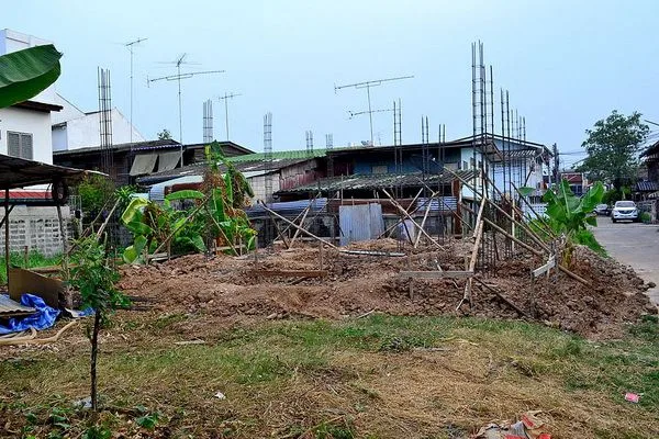 เริ่มด้วยตีผังขุดหลุมทำฐานราก