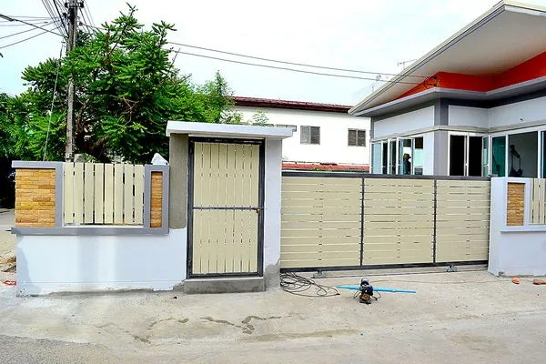 ทำประตูหน้าบ้าน ใช้เป็นรั้วเหล็ก ติดไม้ฝาเฌอร่า