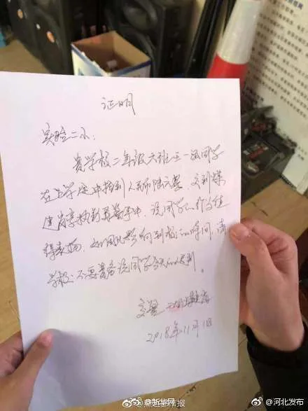 เมื่ออู๋จี๋กั๋ว ตำรวจผู้รับเรื่องทราบว่าการนำเงินมาส่งนี้อาจทำให้หนูน้อยต้องไปโรงเรียนสาย เขาจึงหยิบกระดาษขึ้นมาแผ่นหนึ่งเพื่อเขียนข้อความไว้เป็นหลักฐานยืนยันว่าหนูน้อยได้ทำความดี ช่วยเหลือสังคม เป็นการกระทำที่น่าชื่นชม หากส่งผลต่อเวลาเข้าเรียน ขอให้ทางโรงเรียนพิจารณาไม่ลงบันทึก พร้อมเซ็นชื่อและลงวันที่ให้เรียบร้อย